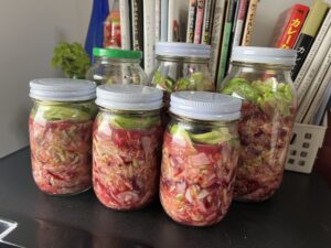 田菜ごころのミールスに必ず添えている、発酵サラダ(ビーツ入りザワークラウト)を作りました。
